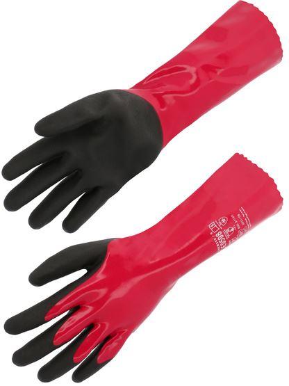 PVC Chemikalienschutzhandschuhe 27 cm EN 420, EN 388, CE CAT III (4.1.2.1) 27 cm lang vollbeschichtet, rotbraun Chemikalienschutzhandschuh mit einem weichen, komfortablen Interlockfutter. Universe...