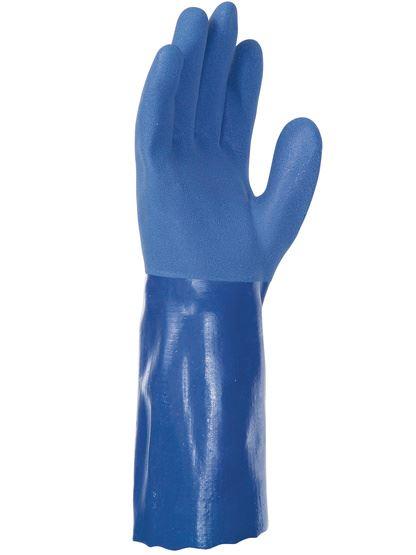 Die doppelte Schicht aus Weich-PVC überzogen mit einer angerauten dreifachen Beschichtung für die Hand, sorgt für ausgezeichneten Schutz und gute Griffsicherheit in Gegenwart von Öl und Lösemitteln.