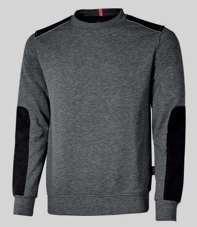 Sweatshirt mit Zubehörtasche/Maskentasche am Vorderarm. Verschleißfeste Aufsätze an den Unterarmen, Ellbogen und Schultern. Reflex-Einsätze.